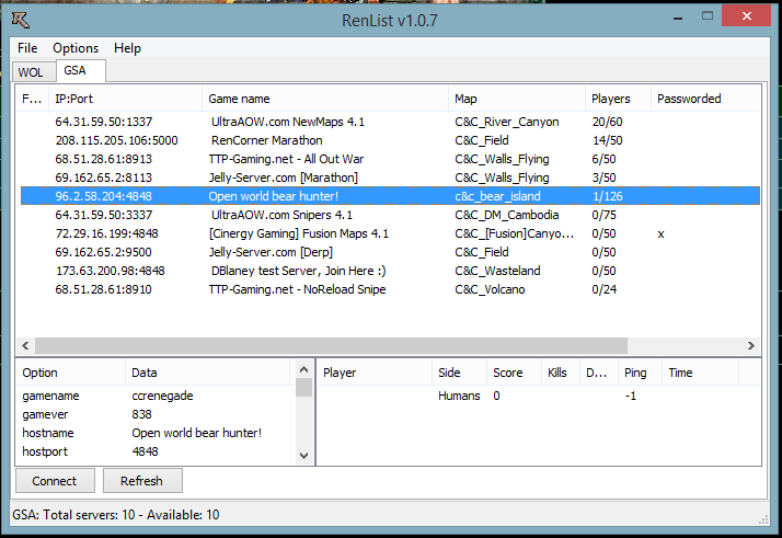 The problem is that player info isn't being sent, the fake player on GDI is probably showing up because RenList doesn't parse stuff properly and thinks the team Nod and team GDI scores info represent a GDI player.