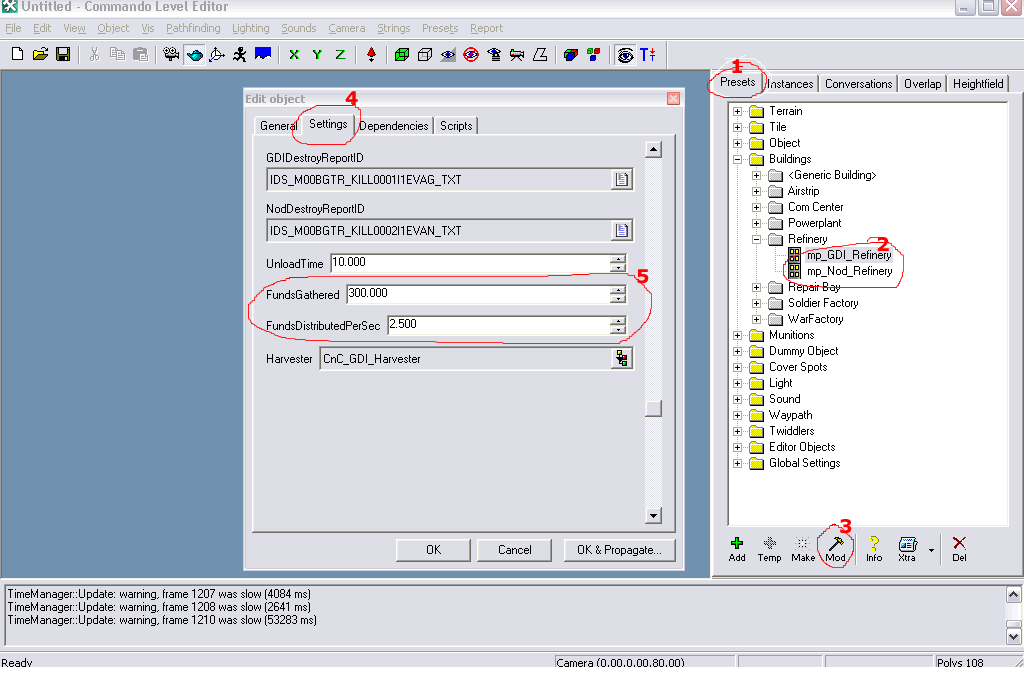 Select one and then click "Mod" at the very bottom. A new screen will pop wid differnt tabs. Select "Settings". Then scroll down to the very last few options. You ll see "Funds Gatherd" and "FundsDistributedPerSec". Those are the options you need to mess around with. Do the same for Nod refinery.