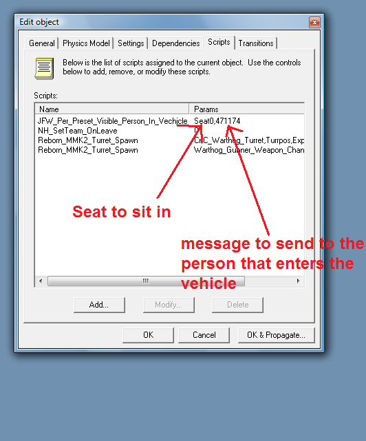 And then on the infantry, you must have one of these scripts attached for each vehicle that has a different custom that is sent (you would only use a different custom if you wanted the vehicle to have a different sit position):