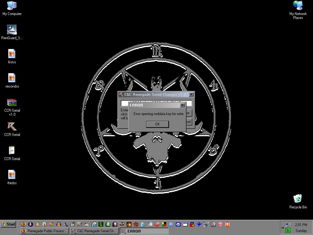 hmm.. perhaps you dont have a WOLData.key file in your renegade folder? If not create a new file called WOLData.key then try the serial program again.