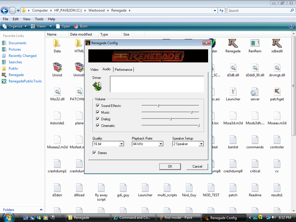 Oh ya, and if anyone else has any problems with this type of deal you will have to put dsound.dll and ALchemy.ini (two files shown below) into the renegade directory.