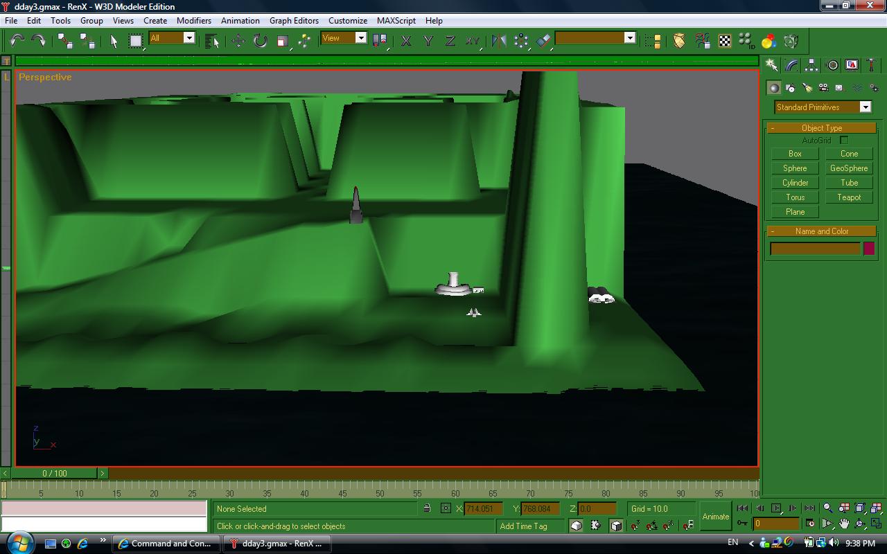 4: That is NOT how you do water. What you want to do is make the island first, make a little bit of a sea floor, then extrude off of the island (preferably all on the same Z coordinate unless you want your water to look stupid), then detach said extrusions and turn that into the water. It'd be a good idea to add in some alpha blending near the shores too, so you'll definitely need to extrude for that part.