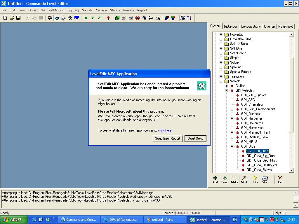 I attempt to load a cnc_gdi_orca and it crashes, i mean im totally like wtf is wrong?!